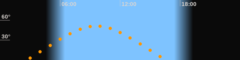 | Höchster Stand (Kulmination) | 09:36 Uhr (h = 51,1°) |