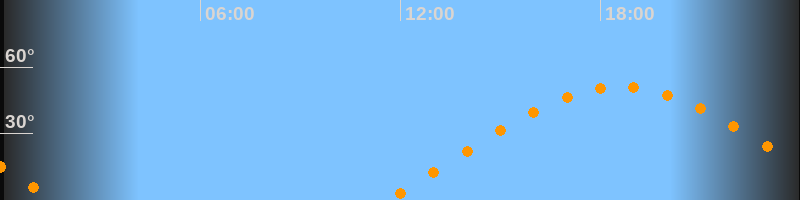 | Höchster Stand (Kulmination) | 18:36 Uhr (h = 51,1°) |