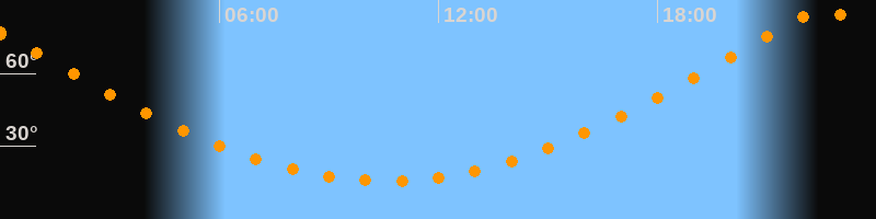 Höchster Stand (Kulmination)22:33 Uhr (h = 85,7°)