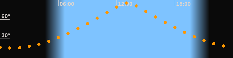 Höchster Stand (Kulmination)13:07 Uhr (h = 85,7°)