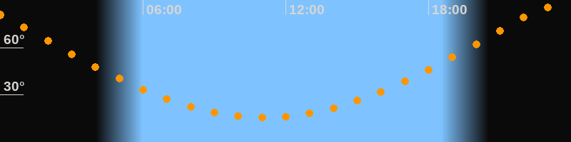 Höchster Stand (Kulmination)23:04 Uhr (h = 85,7°)