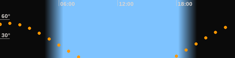 | Aufgang | 17:34 Uhr im Nordosten (αAz = 65,3°) |