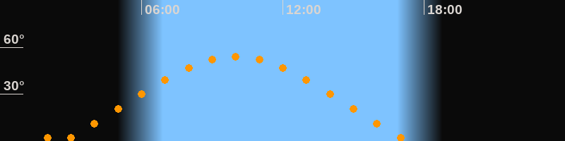 | Höchster Stand (Kulmination) | 10:00 Uhr (h = 54,2°) |