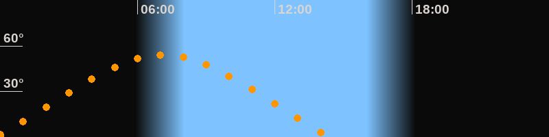 | Aufgang | 23:44 Uhr im Nordosten (αAz = 65,3°) |