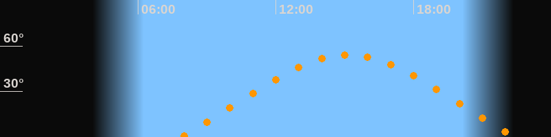 | Höchster Stand (Kulmination) | 15:08 Uhr (h = 54,2°) |