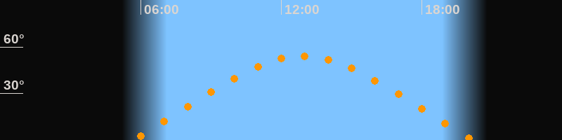 | Höchster Stand (Kulmination) | 12:55 Uhr (h = 54,2°) |