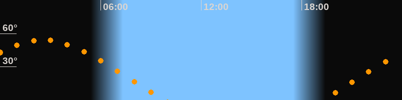 | Aufgang | 19:11 Uhr im Nordosten (αAz = 65,3°) |