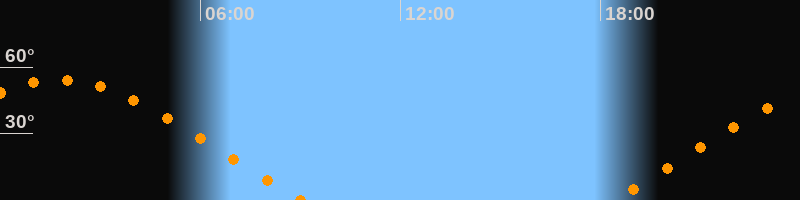 | Untergang | 09:04 Uhr im Nordwesten (αAz = 294,7°) |