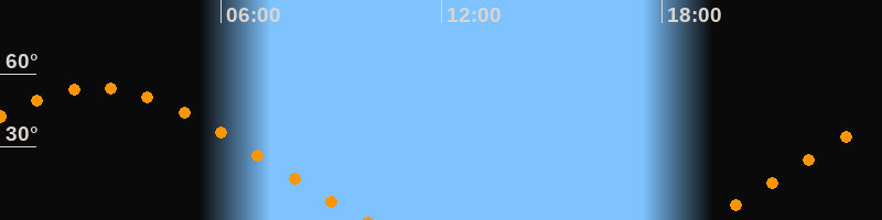 | Aufgang | 19:15 Uhr im Nordosten (αAz = 65,3°) |