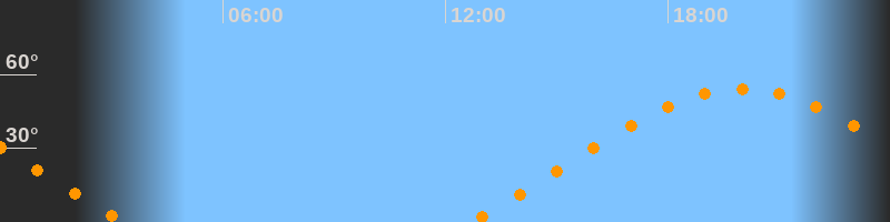 | Aufgang | 12:40 Uhr im Nordosten (αAz = 65,3°) |