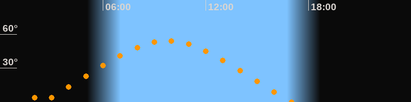 | Höchster Stand (Kulmination) | 09:46 Uhr (h = 54,2°) |
