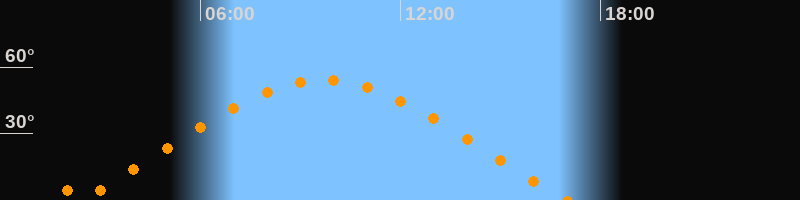 | Höchster Stand (Kulmination) | 09:43 Uhr (h = 54,2°) |
