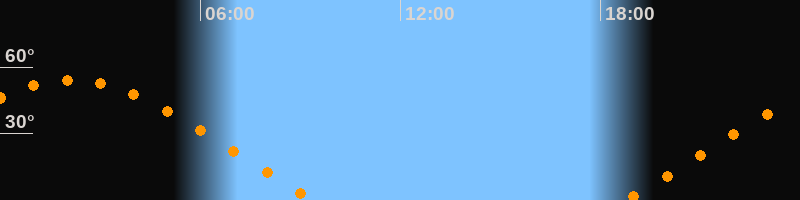 | Höchster Stand (Kulmination) | 02:07 Uhr (h = 54,2°) |