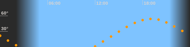 | Aufgang | 11:45 Uhr im Nordosten (αAz = 65,3°) |