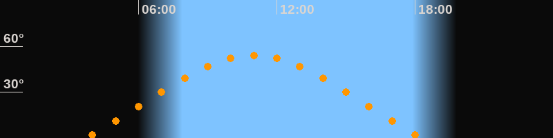 | Höchster Stand (Kulmination) | 11:00 Uhr (h = 54,2°) |