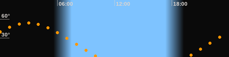 | Untergang | 10:15 Uhr im Nordwesten (αAz = 294,7°) |