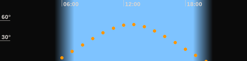 | Höchster Stand (Kulmination) | 12:40 Uhr (h = 54,2°) |
