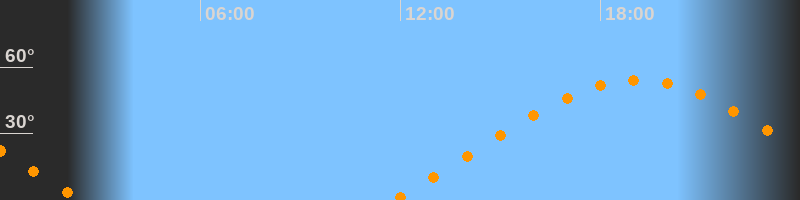 | Höchster Stand (Kulmination) | 19:07 Uhr (h = 54,2°) |