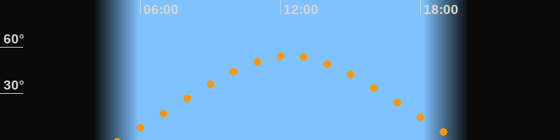 | Höchster Stand (Kulmination) | 12:22 Uhr (h = 54,2°) |