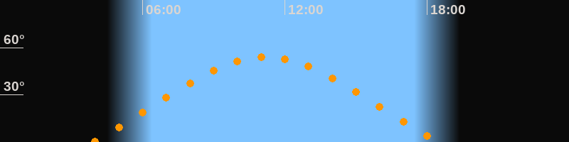 | Höchster Stand (Kulmination) | 11:11 Uhr (h = 54,2°) |