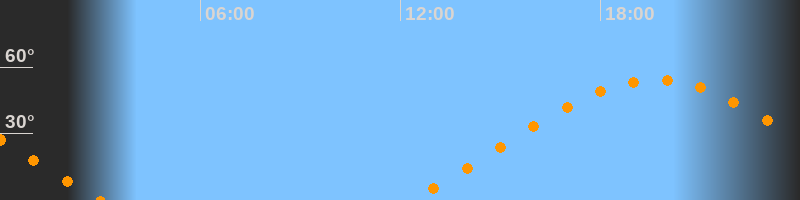 | Höchster Stand (Kulmination) | 19:39 Uhr (h = 54,2°) |