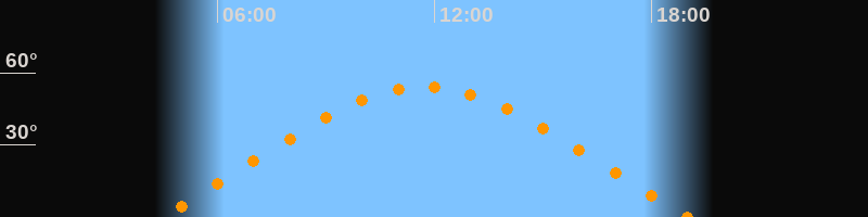 | Höchster Stand (Kulmination) | 11:44 Uhr (h = 54,2°) |