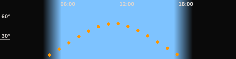 | Höchster Stand (Kulmination) | 11:33 Uhr (h = 54,2°) |