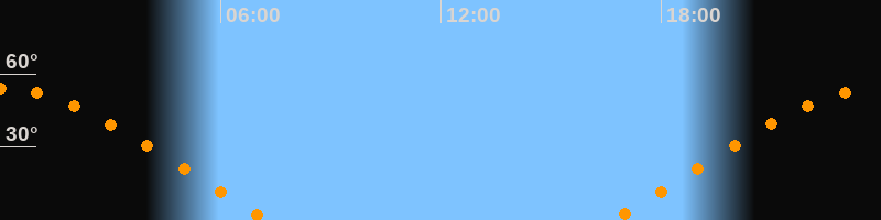 | Untergang | 07:20 Uhr im Nordwesten (αAz = 294,7°) |
