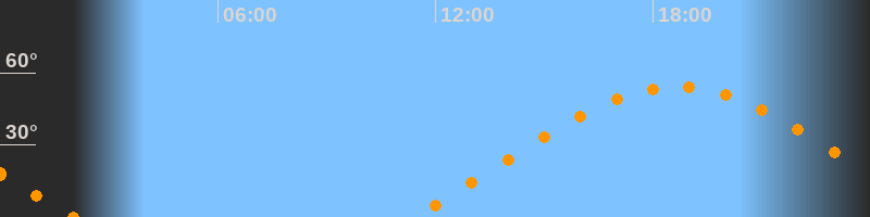 | Höchster Stand (Kulmination) | 18:40 Uhr (h = 54,2°) |
