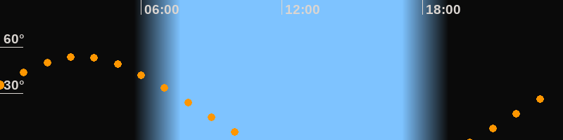 Höchster Stand (Kulmination)03:24 Uhr (h = 53,7°)