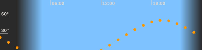 Höchster Stand (Kulmination)19:13 Uhr (h = 53,7°)