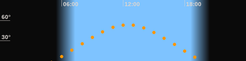 | Höchster Stand (Kulmination) | 12:25 Uhr (h = 53,7°) |