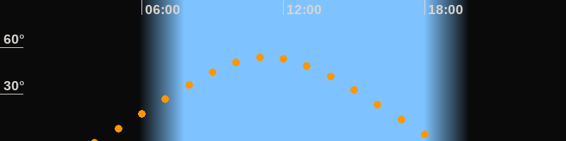 | Höchster Stand (Kulmination) | 11:18 Uhr (h = 53,7°) |