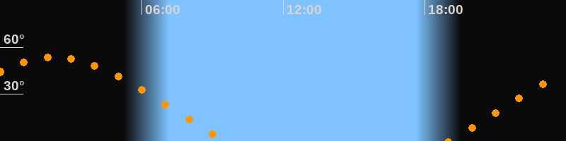 Höchster Stand (Kulmination)02:19 Uhr (h = 53,7°)