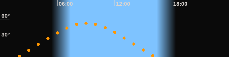 | Höchster Stand (Kulmination) | 09:02 Uhr (h = 53,7°) |