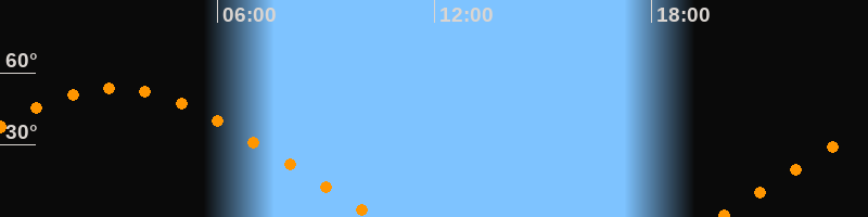 | Höchster Stand (Kulmination) | 03:09 Uhr (h = 53,7°) |