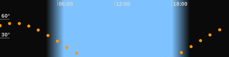 | Höchster Stand (Kulmination) | 01:28 Uhr (h = 53,7°) |