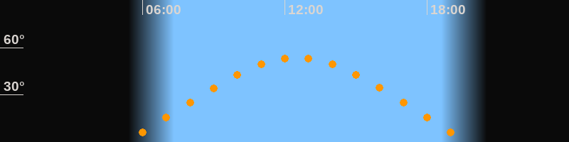 | Höchster Stand (Kulmination) | 12:30 Uhr (h = 53,7°) |