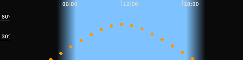 | Höchster Stand (Kulmination) | 12:03 Uhr (h = 53,7°) |