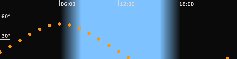 | Höchster Stand (Kulmination) | 06:05 Uhr (h = 53,7°) |