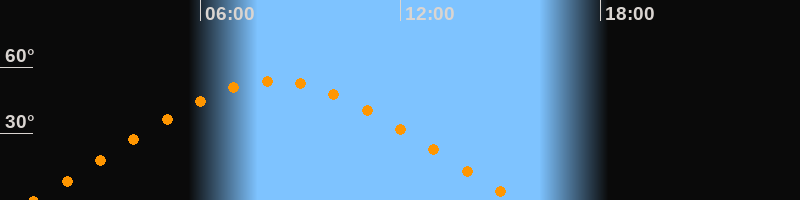 | Höchster Stand (Kulmination) | 08:14 Uhr (h = 53,7°) |