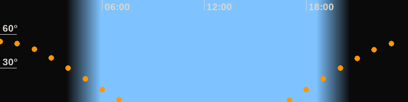 | Untergang | 07:18 Uhr im Nordwesten (αAz = 293,9°) |