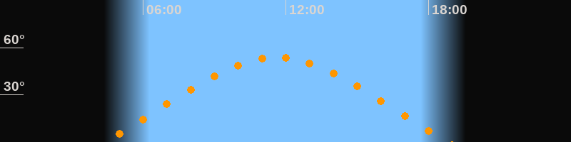 | Höchster Stand (Kulmination) | 11:36 Uhr (h = 53,7°) |