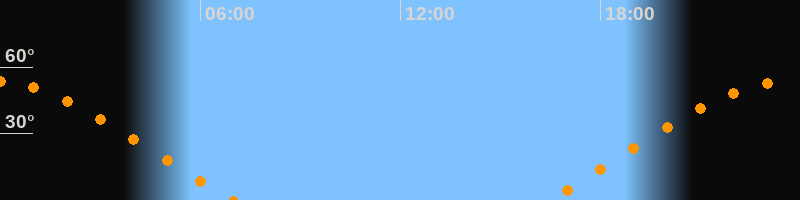 | Aufgang | 16:25 Uhr im Nordosten (αAz = 66,1°) |
