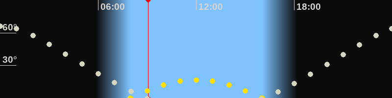 | Höchster Sonnenstand (Kulmination) | 12:00 Uhr (h = 16.8°) |