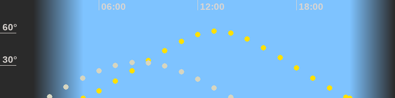 | Höchster Sonnenstand (Kulmination) | 13:08 Uhr (h = 61.7°) |