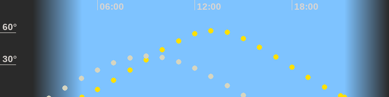 | Höchster Sonnenstand (Kulmination) | 13:08 Uhr (h = 61.8°) |