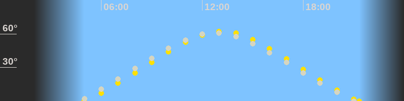 | Höchster Sonnenstand (Kulmination) | 13:09 Uhr (h = 62.3°) |