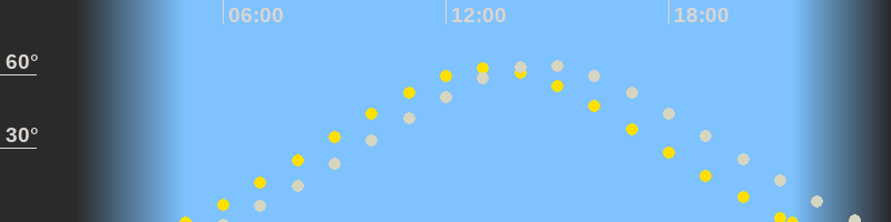 | Höchster Sonnenstand (Kulmination) | 13:10 Uhr (h = 62.4°) |