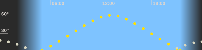 | Höchster Sonnenstand (Kulmination) | 13:12 Uhr (h = 62.7°) |